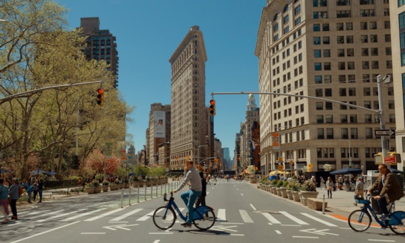 Burying the brownstone fronts in freshness and fragrant flowers;
